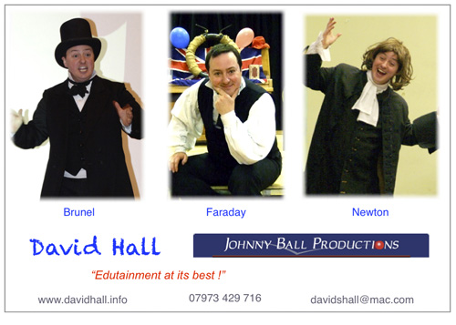 "Sir Isaac Newton, played by David Hall, was a great hit. He brings enthusiasm, vitality and realism to the character and his audience were transfixed. This was Edutainment at its best. We'll certainly have him back."