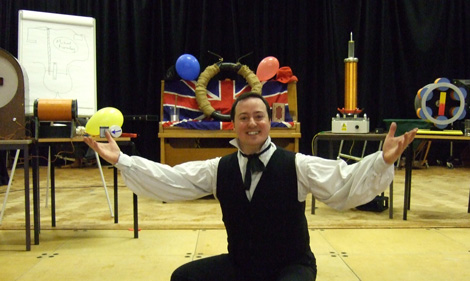With a background as a science teacher, becoming part of Johnny Ball's "Living History of Science" team seemed inevitable, combining all of David's skills. Since 1996 he has been entertaining and educating audiences nationwide as a flamboyant