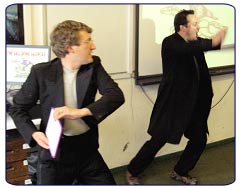 Sir Isaac Newton explodes into the room and an hour later has told you of his life and achievements as well as demonstrated (frequently using members of the audience as volunteers) many of his ground breaking theories and discoveries - with many a squirmingly corny joke along the way.. ..as well as the achievements of some of the giants upon whose shoulders he stood: Archimedes, Kepler and Galileo.
